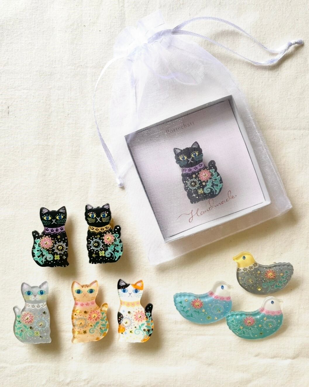 世界にひとつだけのアート猫ブローチです。